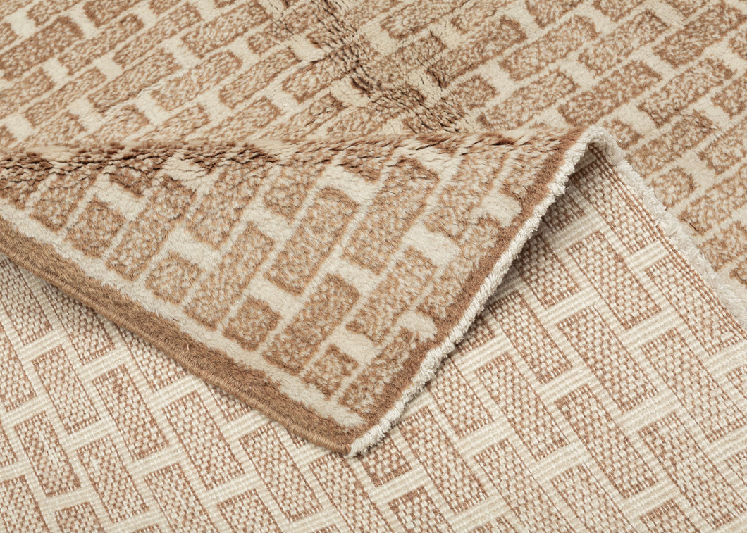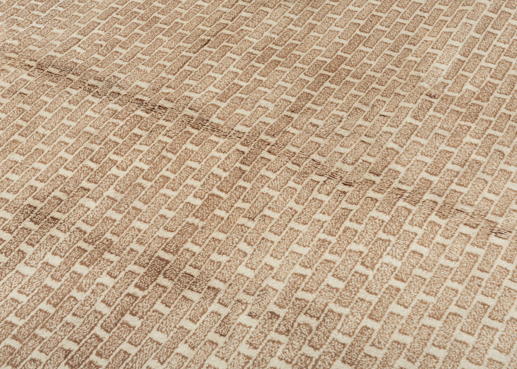 The restrained palette and bold design make this rug exceptionally versatile. Its clean geometry complements modern interiors, while the warmth of the wool and the subtle tonal shifts add depth and texture to the composition.