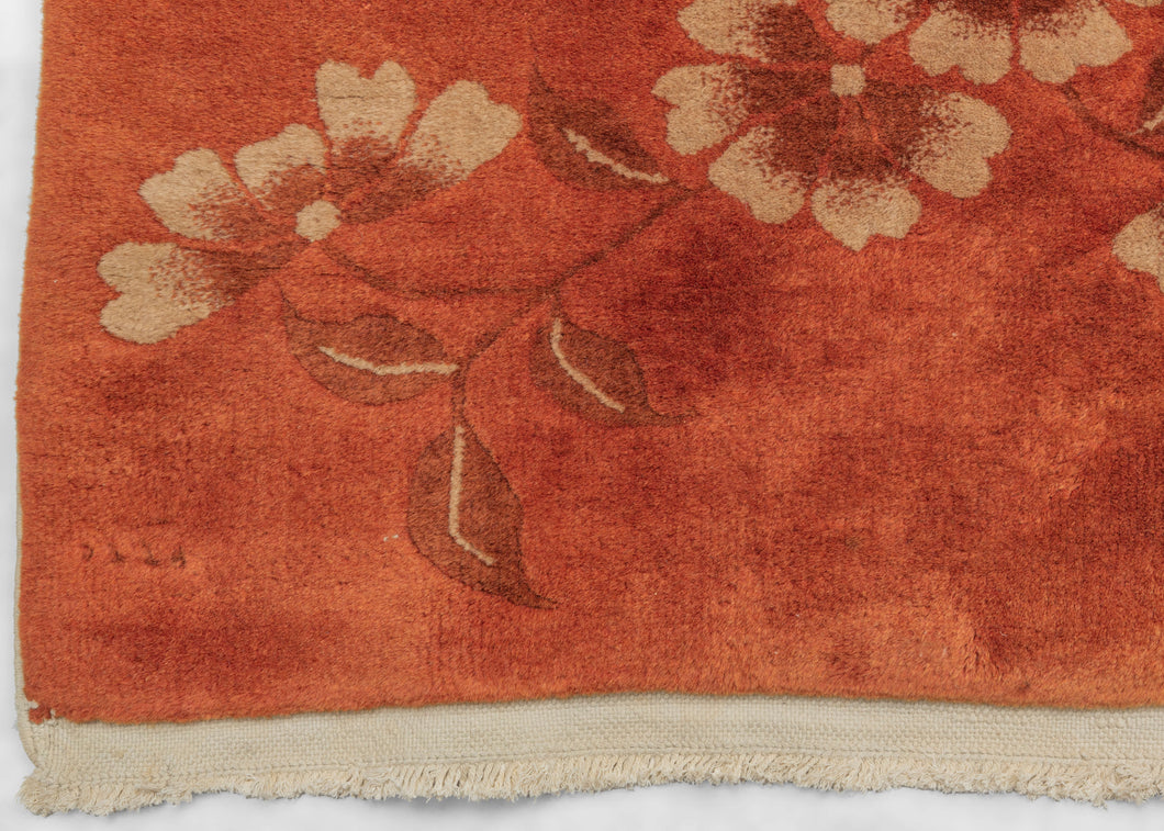 This Art Deco rug was handwoven in Tientsin, China during the second quarter of the 20th century.
