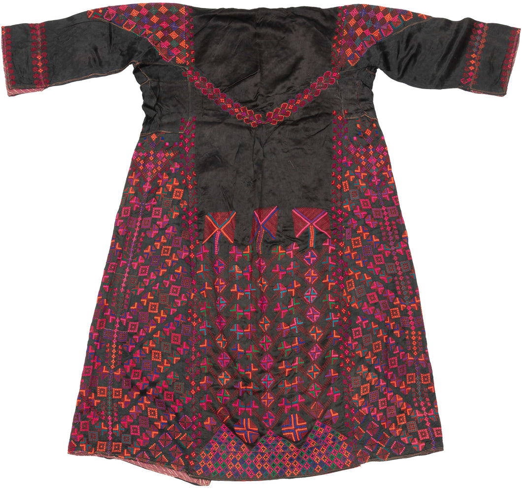Thobes of this type reflect the embroidery traditions of the central Palestinian highlands, where color, density, and precise geometry conveyed village identity, personal taste, and social standing. The confident use of color and structured layout suggest a garment made for special occasions and significant life moments.