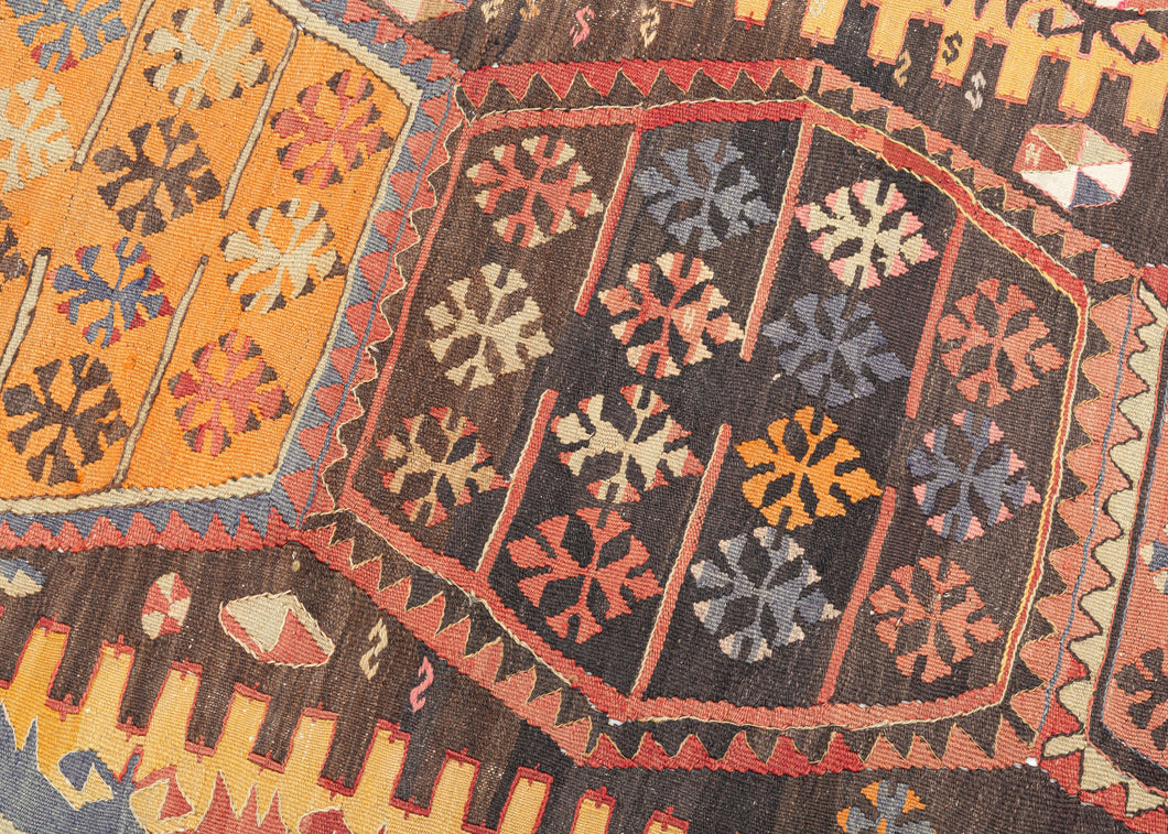 This kilim was handwoven in the Malatalya region of Eastern Anatolian during the early 20th century.