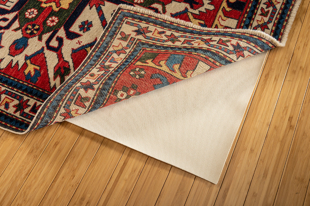 fibers. Light weight and low profile, this pad is suggested for flatweaves but also works great with pile rugs. The width of the roll maxes out at 54” so sizes cut larger will be seamed with tape.